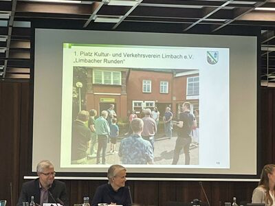 Der Erfolg Limbachs bleibt jedoch nicht nur auf die LIMBACHER RUNDEN beschränkt: Auch die Gemeinde Limbach selbst belegte beim diesjährigen Kreiswettbewerb „Unser Dorf hat Zukunft“ den ersten Platz. Ralph Hilger, der ehemalige Ortsbürgermeister, nahm in Vertretung für die Gemeinde die Ehrung entgegen, da kein Vertreter der Ortsgemeinde anwesend sein konnte. Verbandsbürgermeisterin Gabriele Greis überreichte ihm hierzu ein Kuvert mit Glückwünschen und der offiziellen Urkunde, die Hilger nach seiner Rückkehr umgehend an seinen Nachfolger weiterleitete.